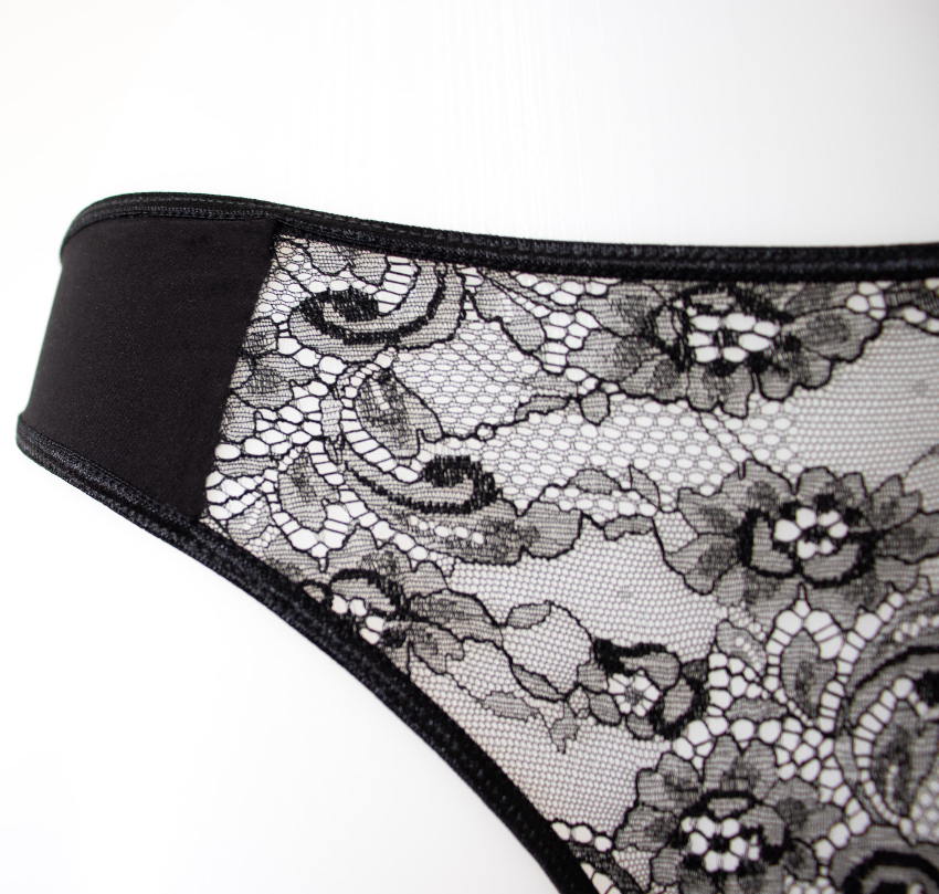 Découvrez notre string délicat en Lycra et dentelle de Calais, doublé de coton. Une piece de lingerie essentiel qui se combine facilement avec notre soutien-gorge bustier, notre soutien-gorge plongeant et notre porte-jarretelles pour créer l'ensemble parfait.